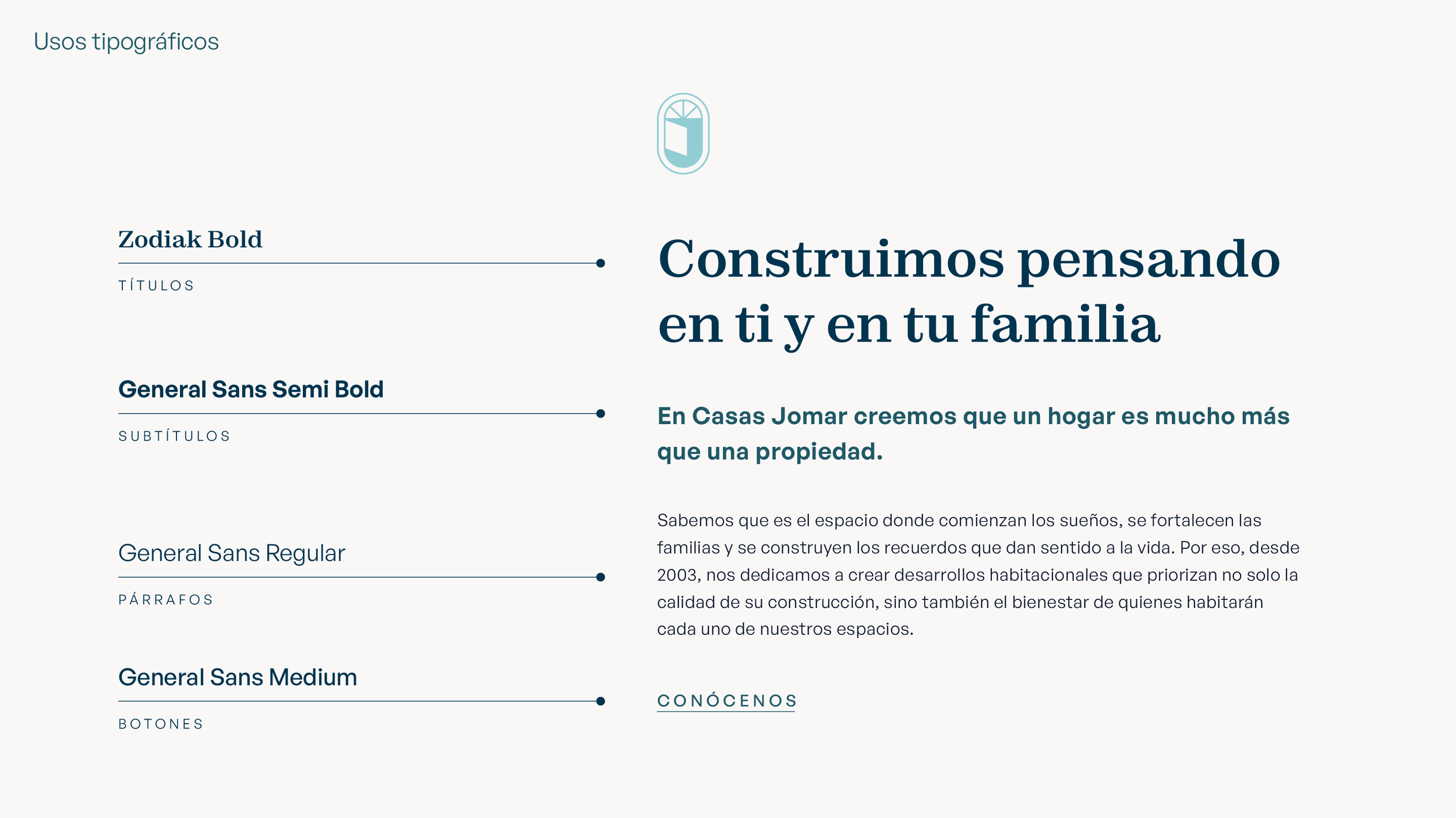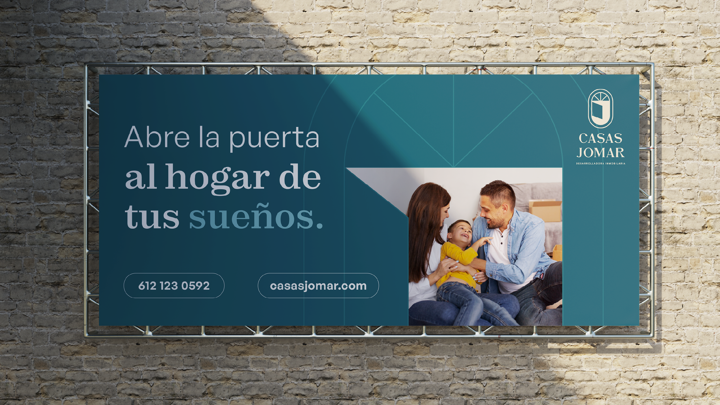 La nueva identidad visual que creamos para Casas Jomar busca transmitir confianza, elegancia y modernidad. El isotipo está inspirado en la idea de una puerta abierta, que representa nuevas oportunidades y el acceso a los sueños de sus clientes y un futuro mejor.